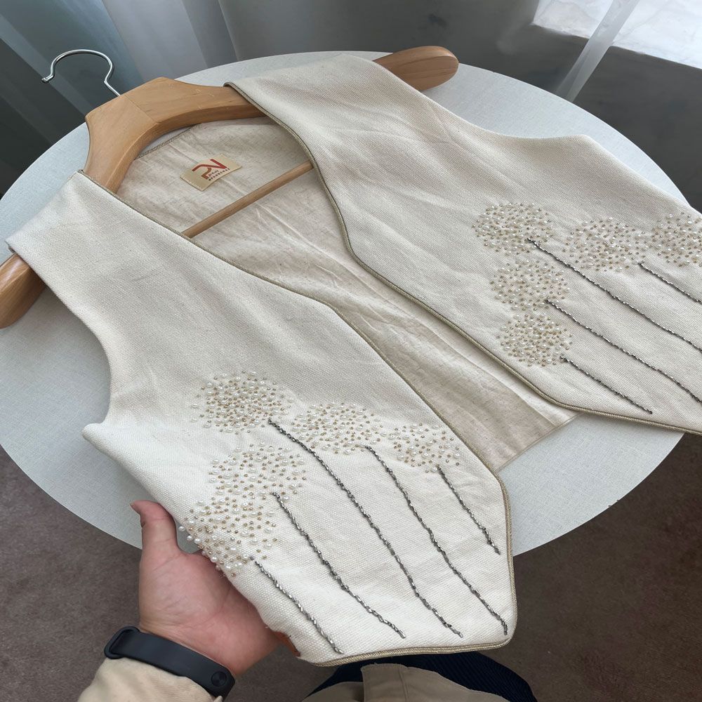 این جلیقه با ترکیبی از طراحی سنتی و سبک مینیمال، هم برای مجالس و دورهمیهای خاص مناسب است و هم برای علاقهمندان به مد پایدار و لباسهای طبیعی در استایل روزمره.والهام گرفته ازطبیعت است.